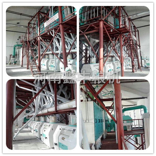 河南鑫豐公司在新疆庫爾勒安裝的一套60噸級(jí)面粉機(jī)組現(xiàn)場展示圖,這款面粉機(jī)設(shè)備采用現(xiàn)代化先進(jìn)工藝,配置高,制粉精細(xì),磨粉采用復(fù)式磨,篩理采用高方平篩,屬60噸級(jí)面粉機(jī)的高配機(jī)組。