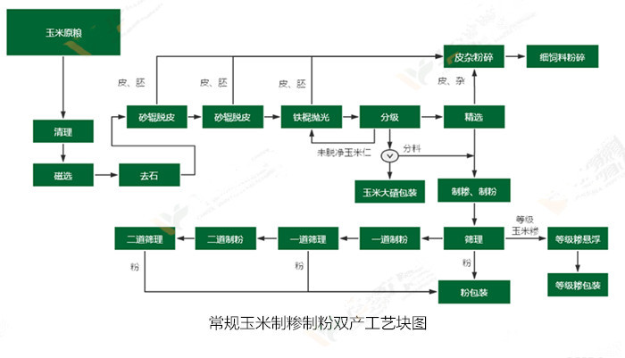 2、玉米干法成套加工工藝,物料加工過(guò)程無(wú)需接觸水,加工更衛(wèi)生,更簡(jiǎn)潔、更省力;